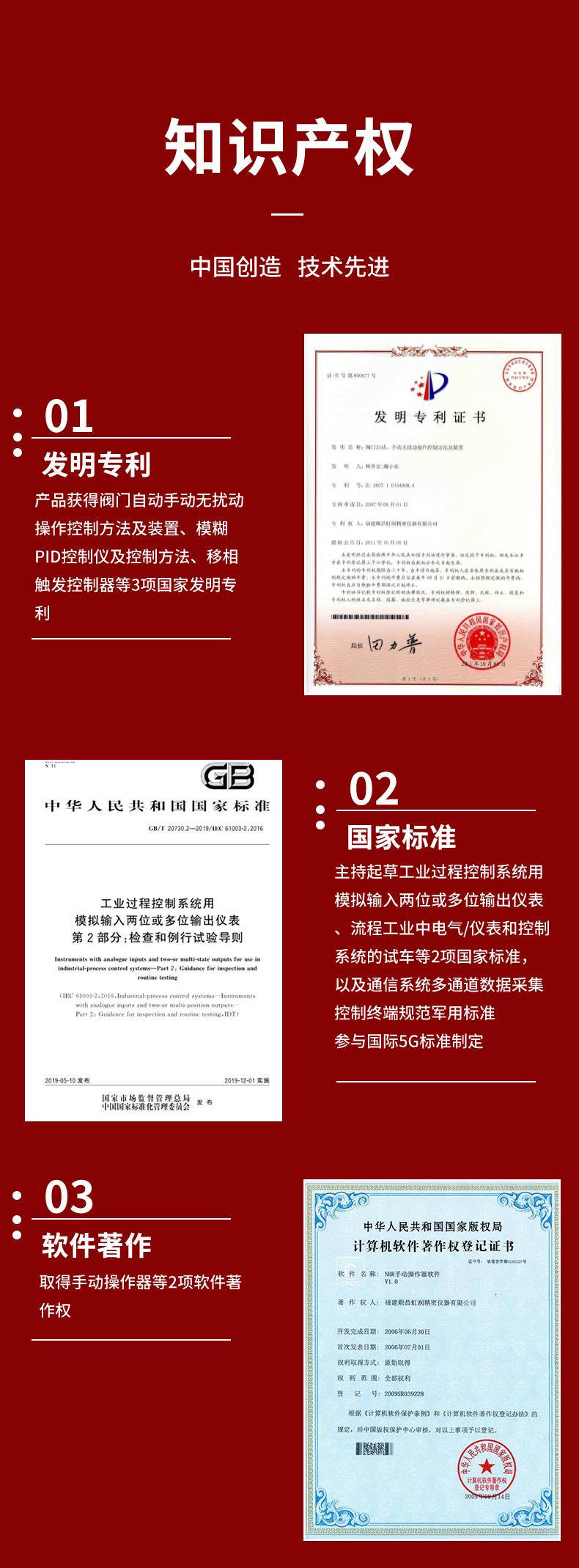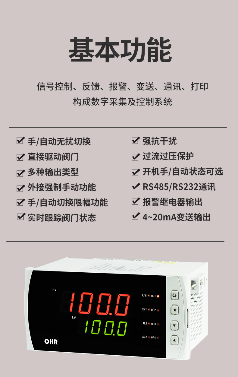 虹潤公司是專業(yè)生產(chǎn)智能手操器的國家專精特新“小巨人”企業(yè),生產(chǎn)的手動操作器,具有手自動無擾切換,直接調(diào)節(jié)閥門,多種輸出類型,外接強(qiáng)制手動功能,高抗干擾等特點。產(chǎn)品獲得閥門自動手動無擾動操作控制方法及裝置、模糊PID控制儀及控制方法、移相觸發(fā)控制器等3項國家標(biāo)準(zhǔn),主持起草工業(yè)過程控制系統(tǒng)用模擬輸入兩位或多位輸出儀表、流程工業(yè)中電氣/儀表和控制系統(tǒng)的試車等2項國家標(biāo)準(zhǔn),以及通信系統(tǒng)多通道數(shù)據(jù)采集控制終端規(guī)范軍用標(biāo)準(zhǔn),參與國際5G標(biāo)準(zhǔn)制定,取得手動操作器等3項相關(guān)軟件著作權(quán)。產(chǎn)品廣泛應(yīng)用于電力、石化、冶金、化工、造紙、食品、輕工、制藥、熱處理、水處理、機(jī)械配套等各種工業(yè)現(xiàn)場。