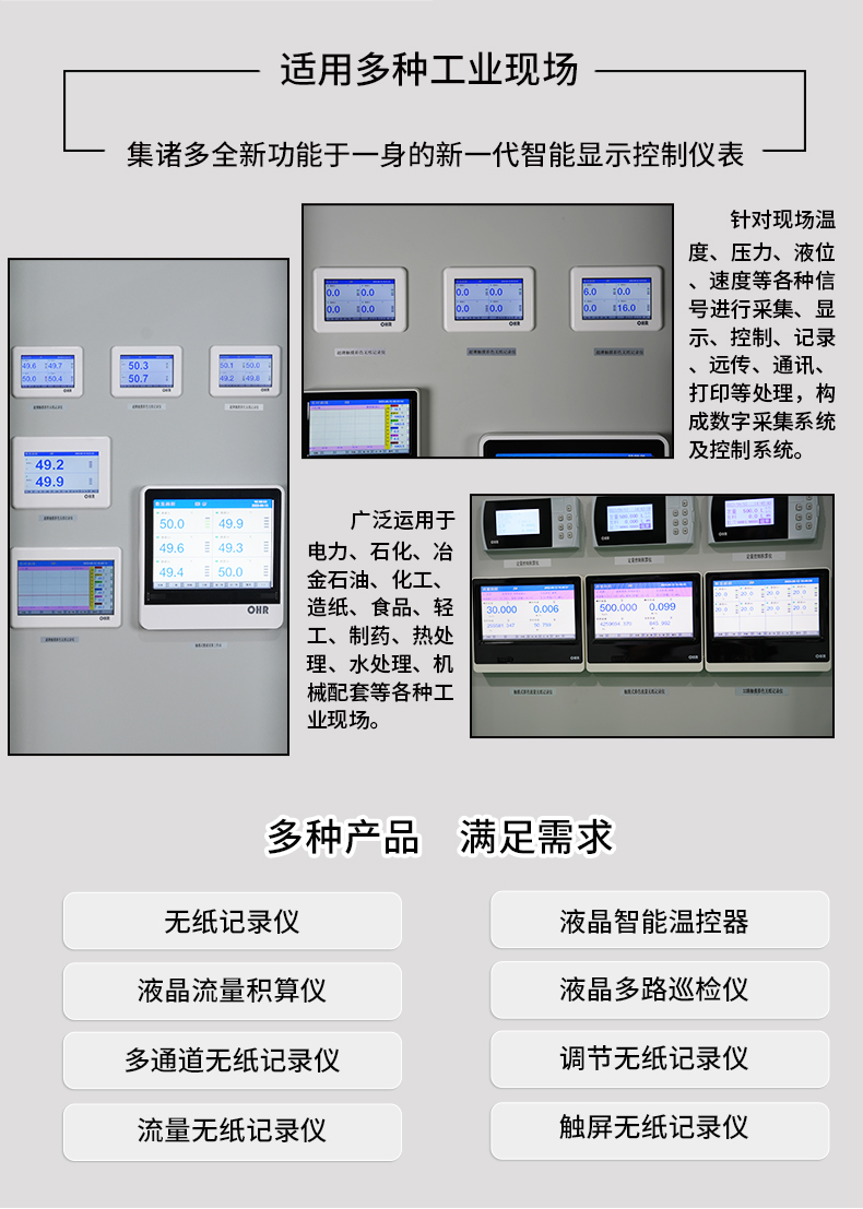 虹潤公司是專業(yè)生產(chǎn)無紙記錄儀的國家專精特新“小巨人”企業(yè)。生產(chǎn)的觸摸屏調(diào)節(jié)無紙記錄儀,具有觸摸大屏顯示,真正人工智能算式,無需人工整定參數(shù),控制精度達(dá)士0.1°C,數(shù)據(jù)記錄與轉(zhuǎn)存, RS485/以太網(wǎng)通訊,5/7/9英寸可選等特點(diǎn)。產(chǎn)品獲得智能化控制器、人工智能調(diào)節(jié)器及調(diào)節(jié)方法、模糊PID控制儀及控制方法、平板無紙記錄儀、巡回檢測顯示方法及裝置等5項(xiàng)國家發(fā)明專利,主持起草物聯(lián)網(wǎng)智能記錄儀表通用技術(shù)條件、物聯(lián)網(wǎng)智能溫度儀表通用技術(shù)條件、工業(yè)過程測量和控制系統(tǒng)用智能調(diào)節(jié)器等3項(xiàng)國家標(biāo)準(zhǔn),通信系統(tǒng)多通道數(shù)據(jù)采集控制終端規(guī)范軍用標(biāo)準(zhǔn),以及空間數(shù)據(jù)與信息數(shù)據(jù)傳輸系統(tǒng)等2項(xiàng)航天標(biāo)準(zhǔn),參與國際5G標(biāo)準(zhǔn)制定,取得觸摸屏彩色調(diào)節(jié)無紙記錄儀等3項(xiàng)相關(guān)軟件著作權(quán)。產(chǎn)品廣泛應(yīng)用于電力、石化、冶金、化工、食品、制藥、熱處理、水處理、機(jī)械配套等諸多領(lǐng)域。