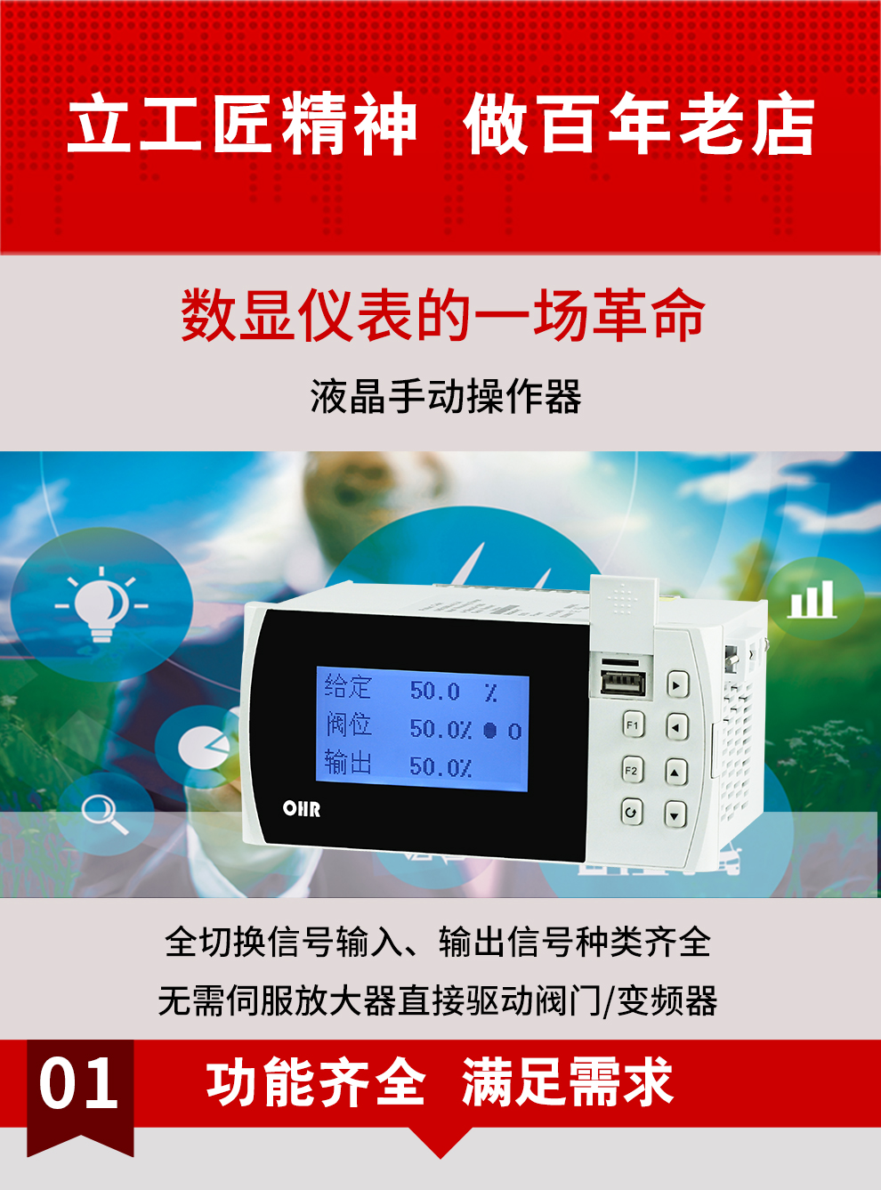 虹潤公司是專業(yè)生產(chǎn)智能手操器的國家專精特新“小巨人”企業(yè),生產(chǎn)的液晶手動操作器,具有全切換信號輸入,通道之間相互隔離,手自動無擾動切換,配上位機管理軟件等特點。產(chǎn)品獲得閥門自動手動無擾動操作控制方法及裝置、模糊PID控制儀及控制方法、移相觸發(fā)控制器等3項國家標準,主持起草工業(yè)過程控制系統(tǒng)用模擬輸入兩位或多位輸出儀表、流程工業(yè)中電氣/儀表和控制系統(tǒng)的試車等2項國家標準,以及通信系統(tǒng)多通道數(shù)據(jù)采集控制終端規(guī)范軍用標準,參與國際5G標準制定,取得手動操作器等3項相關(guān)軟件著作權(quán)。產(chǎn)品廣泛應(yīng)用于電力、石化、冶金、化工、造紙、食品、輕工、制藥、熱處理、水處理、機械配套等各種工業(yè)現(xiàn)場。