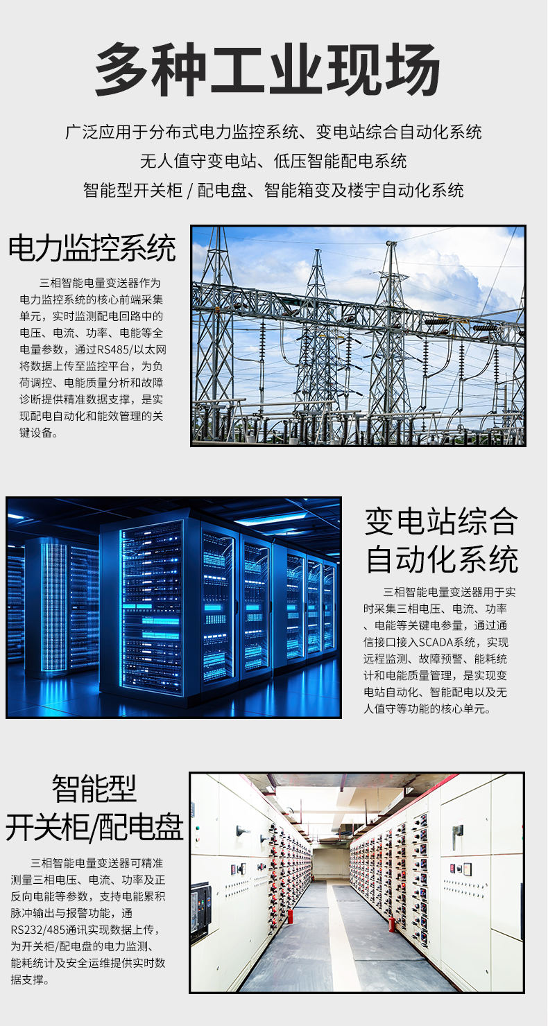 虹潤公司是專業(yè)生產(chǎn)電流傳感器的國家專精特新“小巨人”企業(yè)。生產(chǎn)的三相智能電量變送器,具有多種電參數(shù)測量,正反向電能累積,多種輸出信號,導(dǎo)軌壁掛共用, RS485/RS232通訊等特點。產(chǎn)品獲得基于一種交流信號變送器、交直流信號轉(zhuǎn)換電路、基于DCS技術(shù)的盤裝式三相電量表等3項國家發(fā)明專利,主持起草工業(yè)過程控制系統(tǒng)用模擬輸入兩位或多位輸出儀表國家標準,直流漏電流傳感器規(guī)范、通信系統(tǒng)多通道數(shù)據(jù)采集控制終端規(guī)范等2項軍用標準,以及現(xiàn)場設(shè)備集成等5項智能制造國家標準,參與國際5G標準制定,取得液晶綜合電量集中顯示儀等2項相關(guān)軟件著作權(quán)。產(chǎn)品廣泛應(yīng)用于電力、冶金、化工、水泥、造紙、新能源、基礎(chǔ)設(shè)施等用電密集行業(yè)。