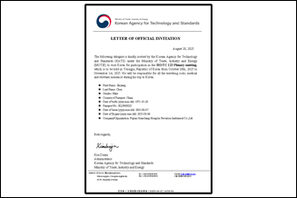 韓國科學(xué)院邀請(qǐng)虹潤公司參加國際標(biāo)準(zhǔn)制定的邀請(qǐng)函